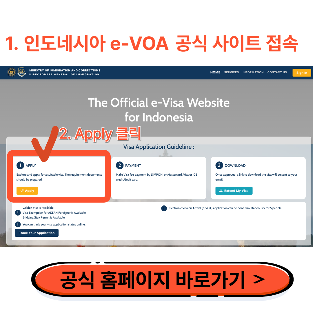 1. 인도네시아 전자비자 신청 공식 사이트에 먼저 접속하세요: evisa,imigrasi.go.id🔗